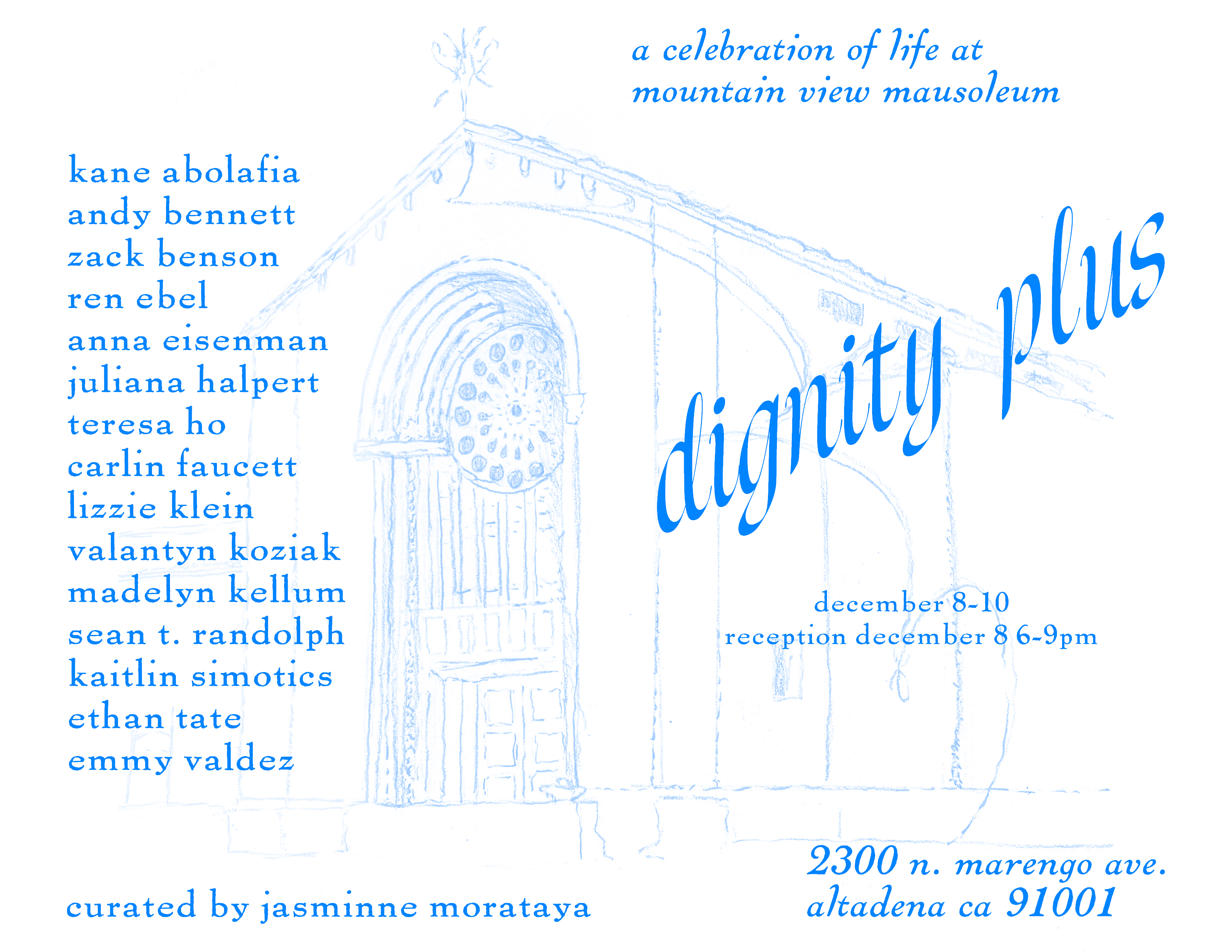 I first visited this cemetery and mausoleum complex—Altadena’s oldest operating business—in the summer of 2018, when I was not quite twenty years old, and gradually, the mausoleum took on totemic importance in my life, as real and vital as any friend. It became a localized projection for the interests I had (striated genealogies, death, abjection, rot, psychic ‘spill’—what most people are into) as well as the anachronistic, lo-fi manner in which I pursued them. I took endless photographs, made castings of headstones in a variety of materials, and wrote conjectural re-tellings of the deceased’s final moments, and how they might have felt about it, filtered through my own imprecise lens. Although the demands of the outside world harangued and continued to exercise guilt upon my person, for a few hours I could pretend to be in another world entirely, with a captive audience of thousands.